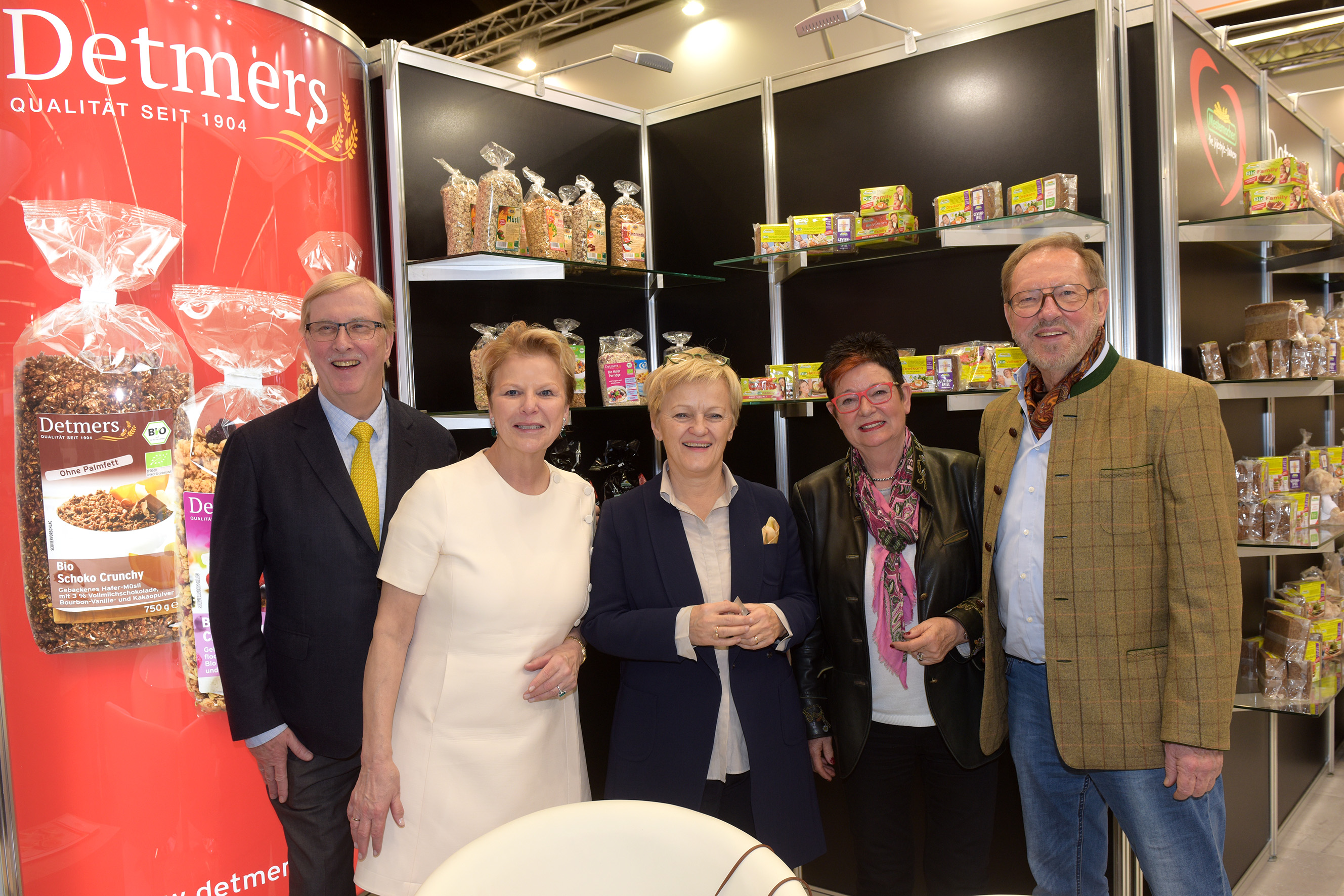 “Organic First” ambassador (f.l.) Albert Detmers, managing partner of the Mestemacher Group; Professor Dr Ulrike Detmers, shareholder, member of the management board, speaker of the Mestemacher Group; Renate Künast, Member of the German Bundestag and former Federal Minister of Agriculture (retd.); Helma Detmers, shareholder Mestemacher Group, and Fritz Detmers, managing shareholder of the Mestemacher Group. Photo: Bischof & Broel