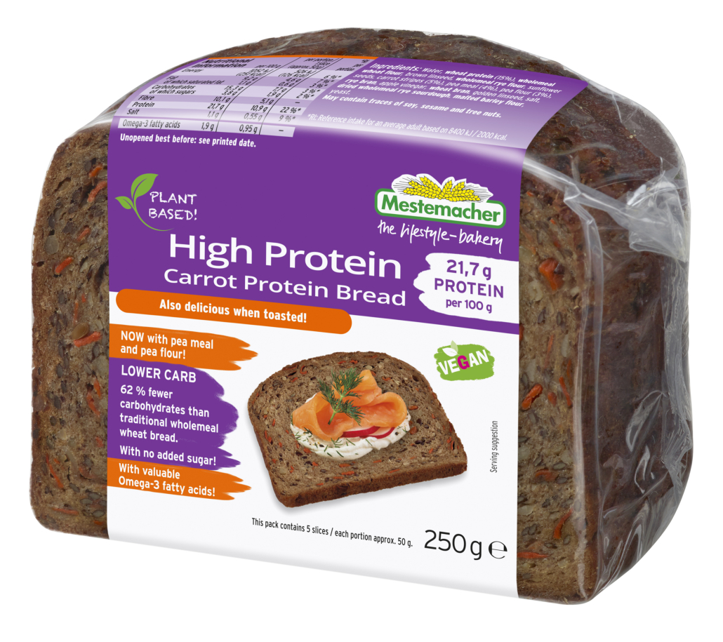 62 % fewer carbohydrates than traditional wholemeal wheat bread.