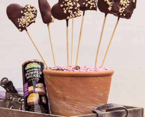 Heart-shaped Pumpernickel chocolate cake pops