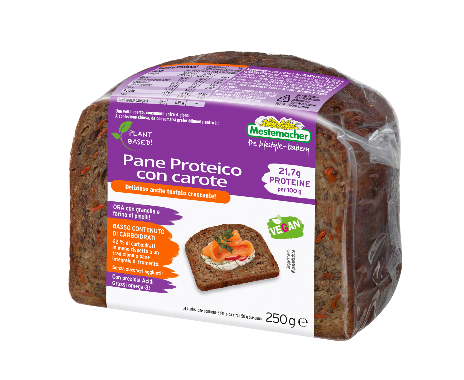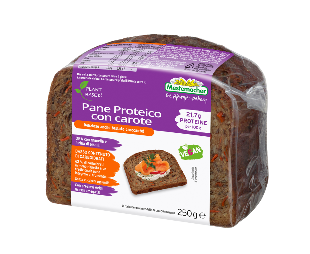 Acqua, proteine del frumento (15%), farina di frumento integrale, semi di lino marroni, farina di segale integrale, semi di girasole, strisce di carote (5%), granella di piselli (4%), farina di piselli (3%), crusca di segale, aceto di mele, crusca di frumento, semi di lino dorati, sale, lievito madre di segale integrale essiccato, farina di malto d‘orzo, lievito.