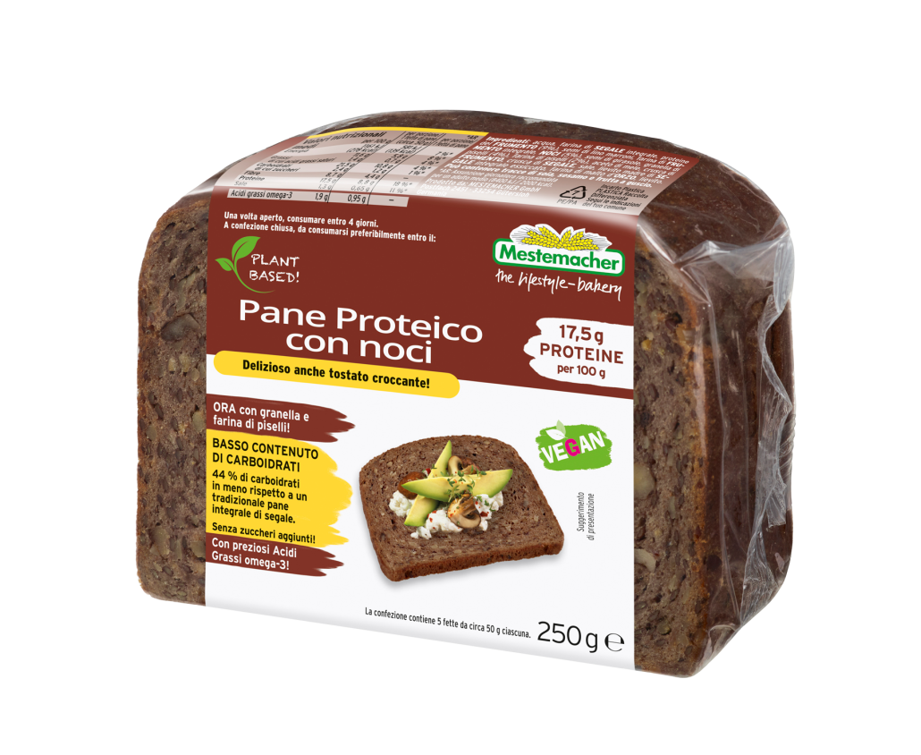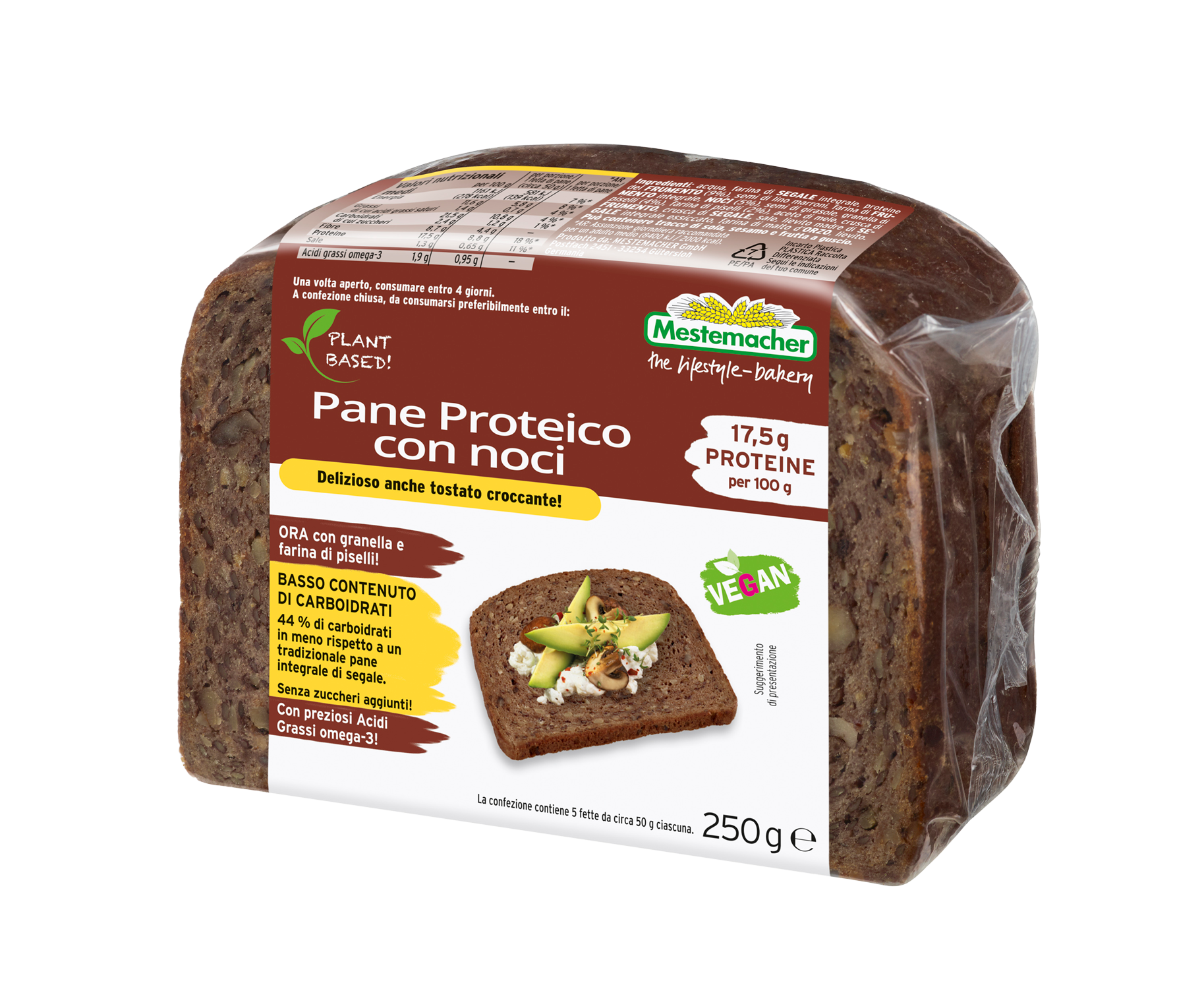 Acqua, farina di segale integrale, proteine del frumento (9%), semi di lino marroni, farina di frumento integrale, noci (5%), semi di girasole, granella di piselli (4%), farina di piselli (2%), aceto di mele, crusca di frumento, crusca di segale, sale, lievito madre di segale integrale essiccato, farina di malto d‘orzo, lievito.